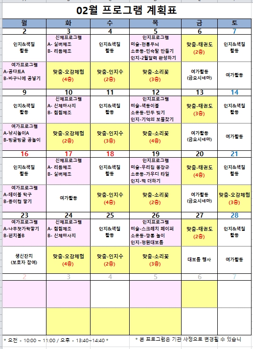 2026년 2월 프로그램계획표